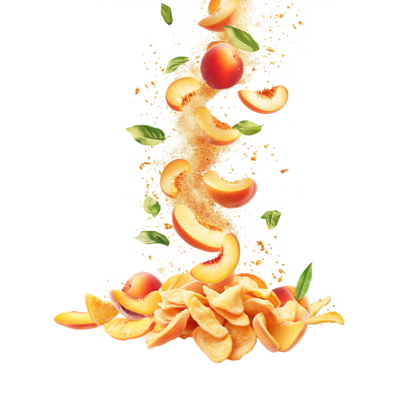 The freeze-dried method (-40 ºC) removes 99% of the fruit's water content, making it very light. Therefore, 20 grams of freeze-dried fruit equals 200 grams of fresh fruit (x 10).